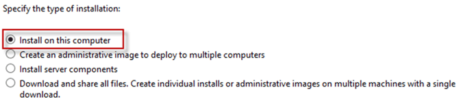 - Specify the installation type: We will be covering “Install on this computer” in this guide.