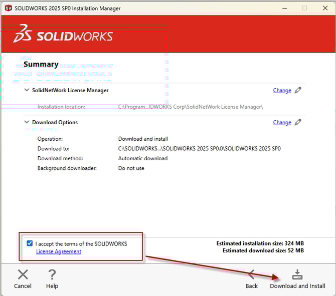 - If all looks correct on the Summary, accept the License Agreement and select “Download and Install”