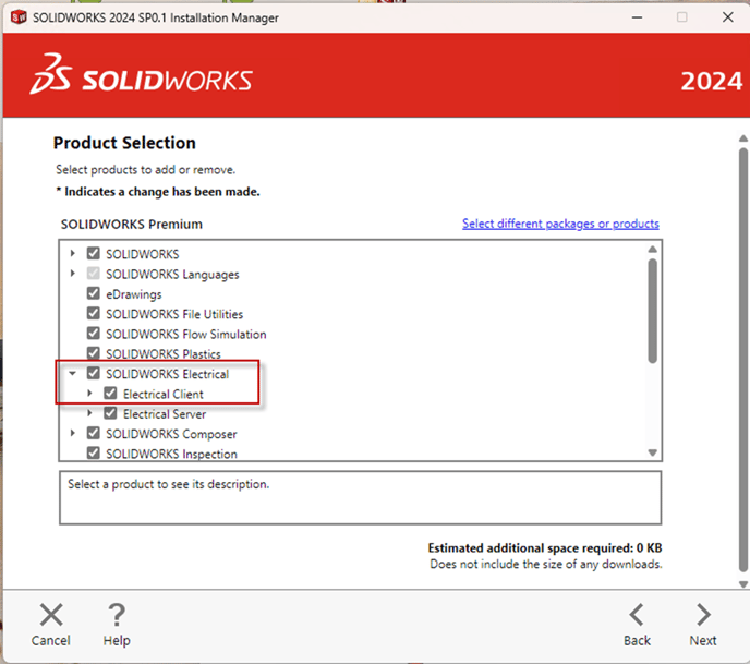 Check on the box for “Electrical Client” if the box for Server is checked and/or greyed out, ignore it and do not uncheck it.