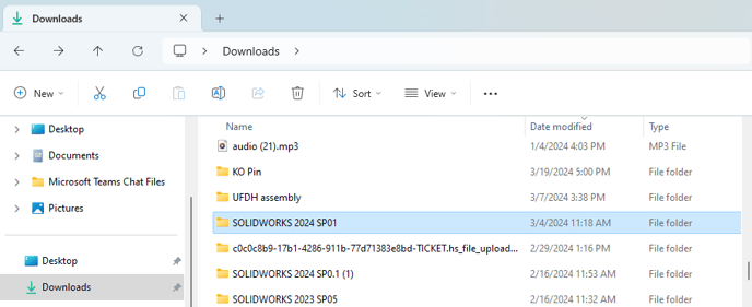 Open a File Explorer Tab and locate the folder for your SolidWorks installation media. It should read SOLIDWORKS 202x SPX:
