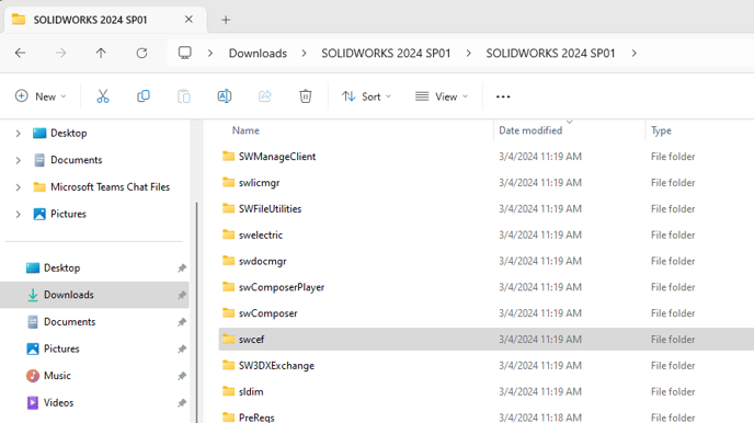 Inside of the swcef folder, you will find an installer named CEF for SOLIDWORKS Applications.msi: