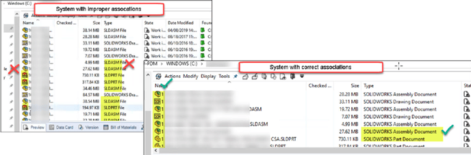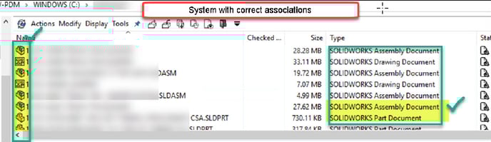 Now when you view files in PDM the icons and file types should be correct. You will be able to open a file from within SOLIDWORKS without crashing when you search PDM .